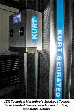 JEM utilizes Kurt CarvLock cluster towers on the system, and just recently started using a new model with mating serrated mounting surfaces. From a distance, it appears like those towers are the ones that have been around for a number of years. But if you look more closely, you'll see a new featureserrated mounting surfaces.