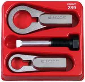 Nut Splitters are designed to remove frozen, corroded or rusted nuts that just won't budge. The user places the splitter over the nut and turns the hardened chisel point screw till the nut breaks away from the bolt. The tool is designed to break the nut into easily removed pieces without damaging the bolt that the nut is fastened to. It can be used to split nuts as large as 46 mm or 1-13/16 inches.